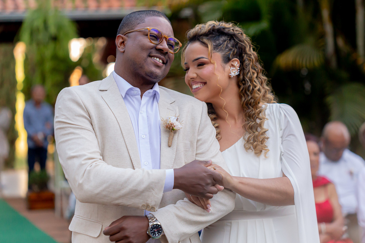 Um casal sensível, emotivo e cheio de alegria, que fez questão de envolver cada convidado em uma atmosfera de encantamento e emoção durante a cerimônia.